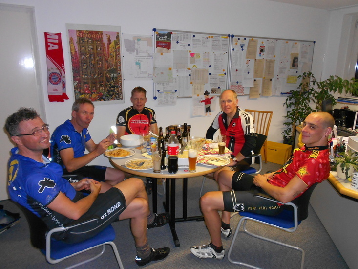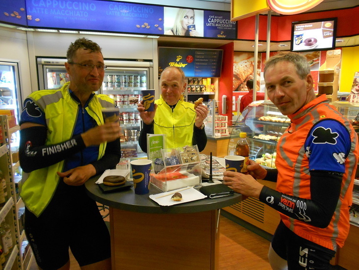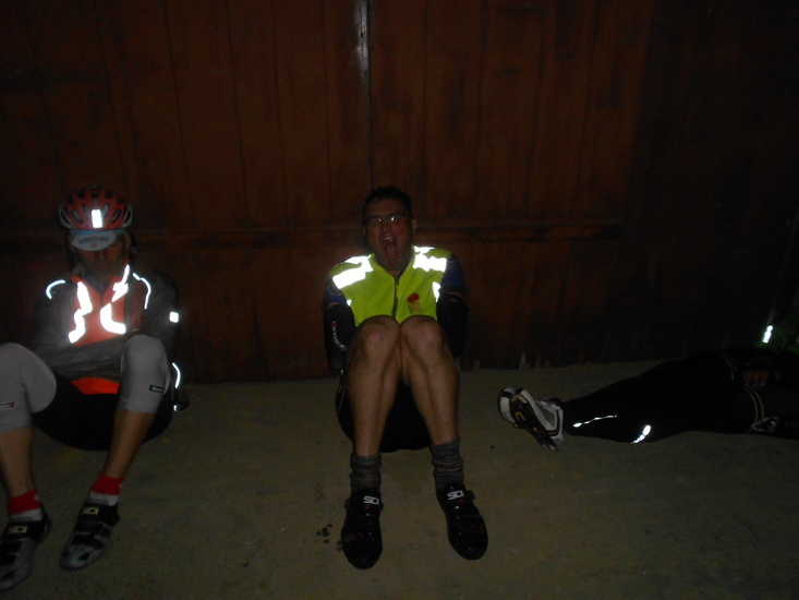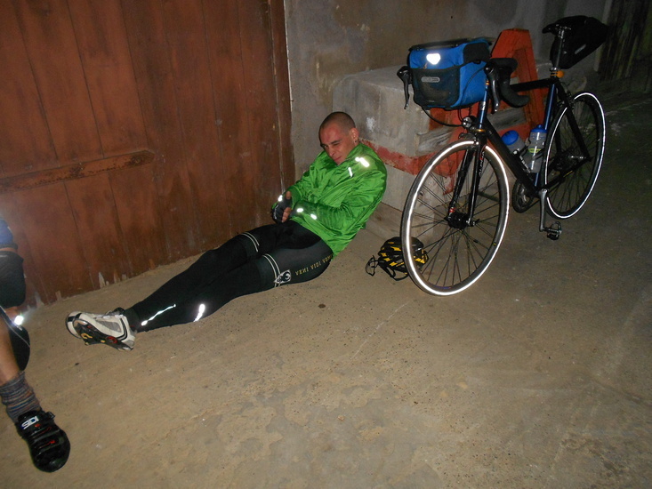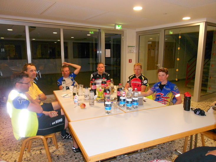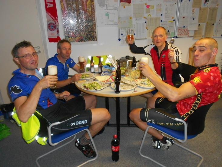 | Fr, 00.40 Uhr: | Die fünf Radfahrer fahren gestärkt in die Nacht. | |