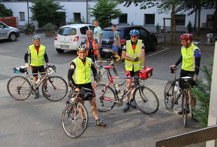| Fr, 8.10 Uhr: | 318 km | Unsere Radfahrer sind die Nacht durchgefahren und eben im St. Paulusheim angekommen. Es erwartet sie dort ein tolles Frühstücksbuffet. Nach dem Frühstück geht es weiter -- mit einer Verschiebung des Zeitplans um eine Stunde ist zu rechnen. |