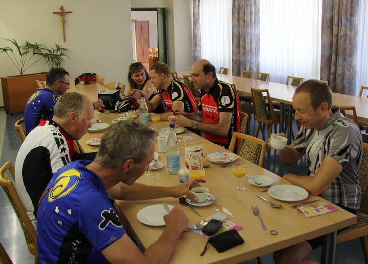 | Nach einem super Frühstücksbuffet sind die Radfahrer wohlgestärkt gestartet. | ||