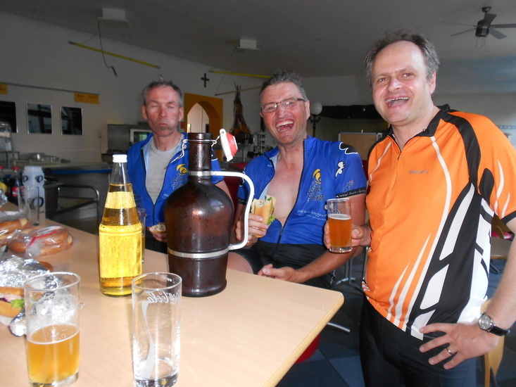 | Do, 16.45 Uhr: | 0 km | Die Teilnehmer sind gestartet. Es sind nun fünf Radfahrer, welche die ganze Strecke fahren werden. |
